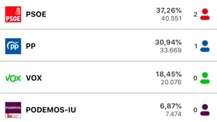 El PSOE mantiene 2 diputados, el PP 1 y Vox se queda a 200 votos de obtener representación