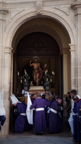 Uno de los momentos más emblemáticos del desfile procesional de esta hermandad es la salida de la Antigua Iglesia de San Andrés