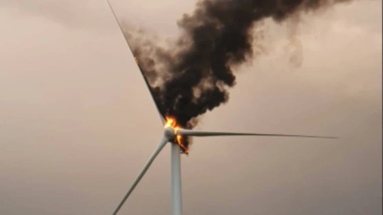 Una vez allí comprobaron que la turbina de una de las palas del aerogenerador del parque eólico de esta localidad estaba ardiendo tras una tormenta, lo que obligó a desconectar la red eléctrica del parque por seguridad.