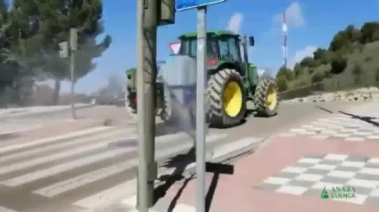 La Asociación Agraria de Jóvenes Agricultores ASAJA está colaborando con el Ayuntamiento de Cuenca en la desinfección de las calles en este momento de emergencia sanitaria. Así, varios agricultores se han trasladado a la capital con sus tractores, desde municipios como Cañaveras y Fuentesclaras, y desde primera hora de la mañana están circulando por las vías más anchas.