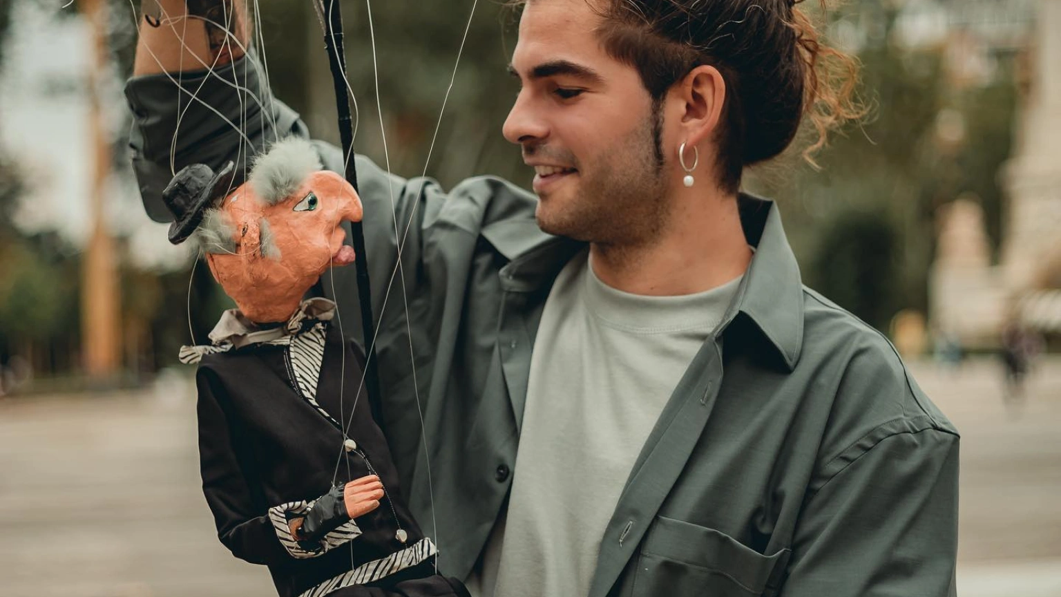 Mario no viaja solo, le acompaña Manolo, su títere. En cada parada, aprovecha para sacar su pequeño altavoz y jugar con los niños y mayores de los pueblos, convirtiendo el viaje en un espectáculo improvisado.