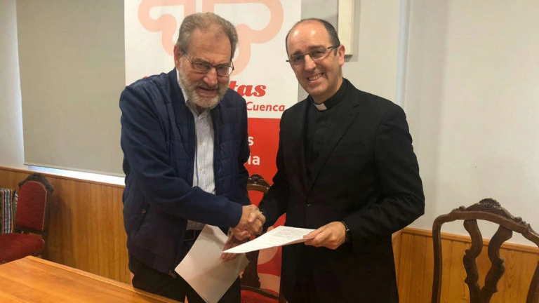 El rector del Seminario Conciliar San Julián de Cuenca, José Antonio Fernández y el director de Cáritas Diocesana, José Martín, han firmado un convenio de colaboración por el cual el Seminario cede el uso de sus huertas en la hoz del Júcar para fines sociales.