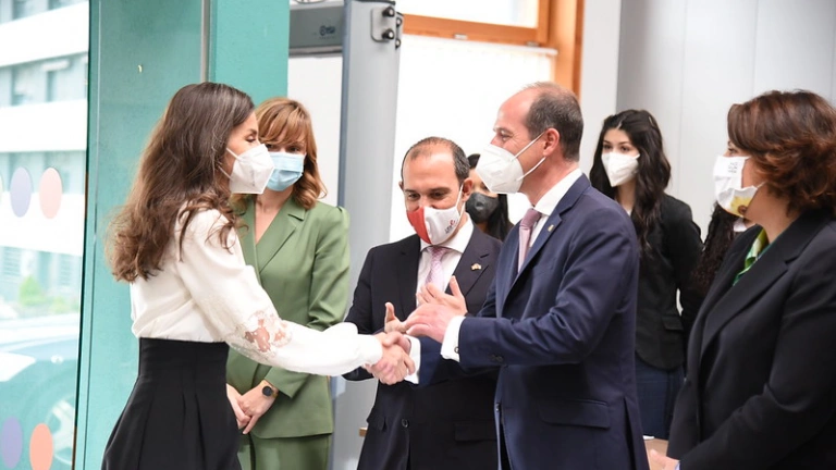La Reina Letizia, vestida de Carolina Herrera, visita el TYCE en el "Tour del Talento"