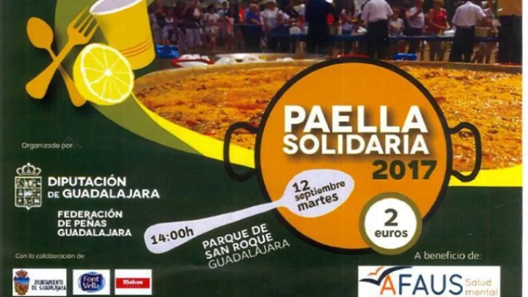 Mañana, a las 14:00, en el Merendero de San Roque, se servirá la gran Paella solidaria de las Ferias y Fiestas de Guadalajara. Con la organización de la Diputación provincial, el Ayuntamiento y la colaboración de las peñas de la capital, su recaudación irá destinada este año a AFAUS Pro Salud Mental. Cada ración cuesta 2 euros.Hablamos con la Secretaria de la Junta Directiva de AFAUS, Maribel Rodríguez, para conocer los programas destinatarios de nuestra colaboración económica y el trabajo diario de los profesionales de esta organización dedicada a la atención de las personas con enfermedad mental y sus familias.