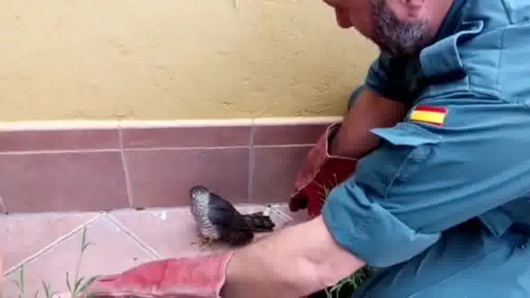 Rescate de un gavilán herido en una vivienda de Monasterio