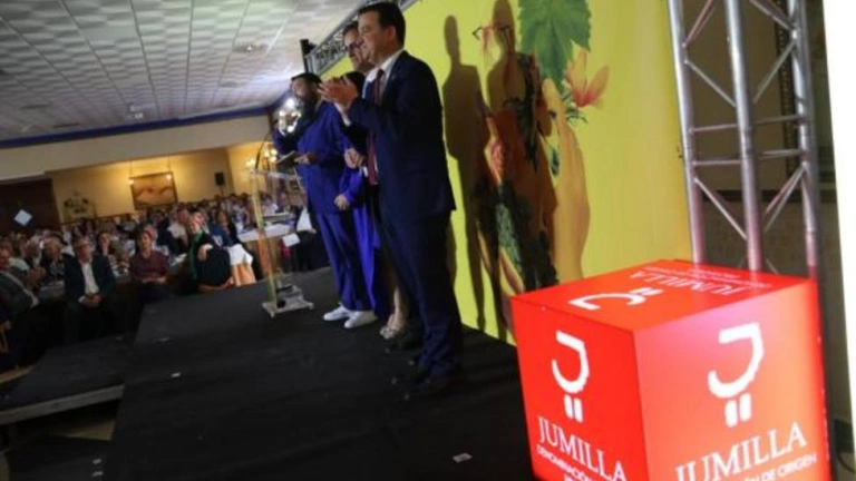 Jumilla (Murcia), 15 de abril de 2023.– El consejero de Agricultura, Agua y Desarrollo Rural, Francisco Martínez Arroyo, ha participado un año más en la gala más importante para los viticultores de la Denominación de Origen Jumilla, que ampara a los viñedos de seis municipios de la provincia de Albacete y 1.500 familias en una figura de calidad supra autonómica. “Como siempre aquí, apoyando a nuestras bodegas y a nuestros viticultores, a los pueblos de alrededor de la provincia de Albacete y defiendo nuestro vino”, ha destacado.