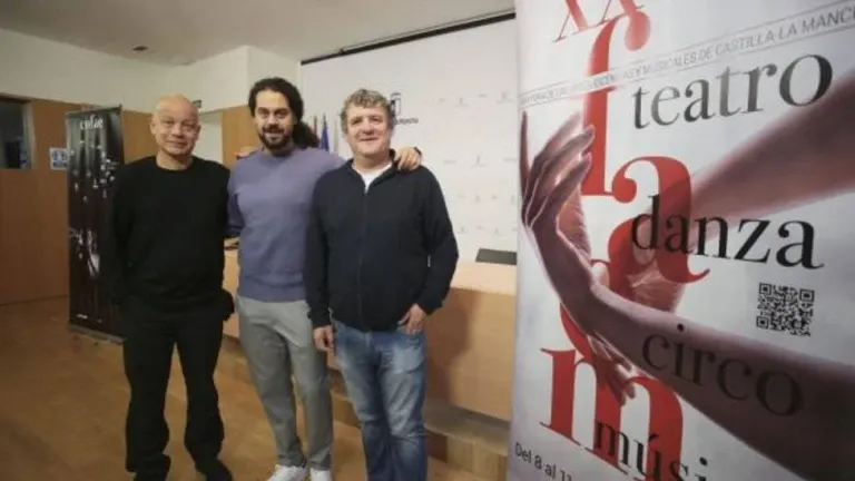 El director de la Feria de Artes Escénicas y Culturales de Castilla–La Mancha, Antonio Campos; el director y músico de “Vive Moliere”, Yayo Cáceres y el directivo de la Asociación Nacional de Empresas Distribuidoras y Gestoras de Artes Escénicas (ADGAE), Nacho Vilar, productor y distribuidor de “Tenorio”, han presentado esta obra, que hoy estará en el Teatro Circo, conmemorando al universal dramaturgo francés, a pocos días de su estreno en el teatro “La Abadía”.
