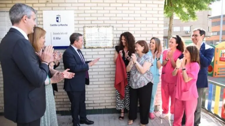 Para celebrar su primer medio siglo de vida, el Gobierno regional ha descorrido una placa de cerámica con la que se ha homenajeado al centro educativo como dinamizador de la educación de la localidad en edades tempranas. El encargado de plegarla ha sido el presidente de Castilla–La Mancha, Emiliano García–Page.