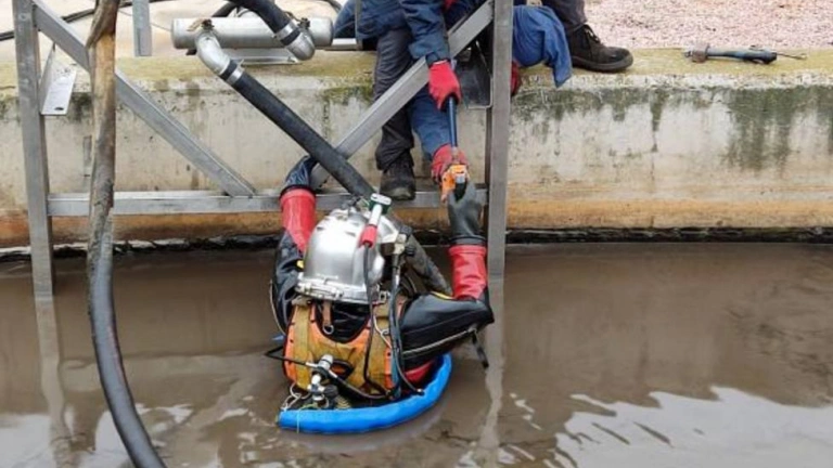 “Para montar las parrillas, se ha contado con buzos para el anclaje en profundidad de las guías, un camión grúa y personal especializado”, ha expuesto la directora–gerente de Infraestructuras del Agua de Castilla–La Mancha. Gracias a este procedimiento, se evita la necesidad del vaciado del reactor biológico y, por ende, la parada de la EDAR.