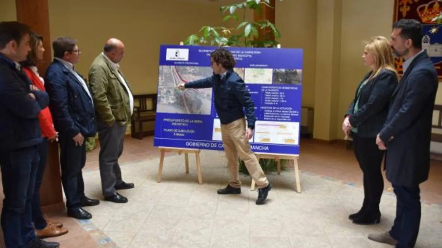 Junto al alcalde del municipio, Joaquín González; la delegada de la Junta en Cuenca, María Ángeles Martínez; el delegado de Fomento en la provincia, José Ignacio Benito; y la vicepresidenta de la Diputación provincial, Elena Carrasco, el vicepresidente ha conocido los detalles del proyecto de la futura rotonda.