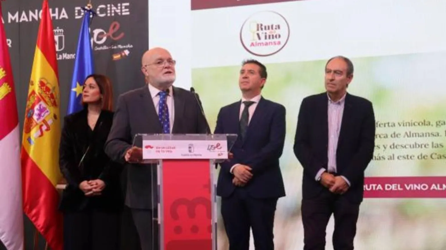 Ruiz Santos que ha estado acompañado del presidente de la Diputación, Santiago Cabañero; la directora del Instituto de la Mujer, Pilar Callado; la vicepresidenta del Parlamento regional, Josefina Navarrete; el subdelegado del Gobierno en Albacete, Miguel Juan Espinosa; los delegados provinciales de Economía, Empresas y Empleo y Fomento, Nicolás Merino y Julen Sánchez y el presidente de la DO “Almansa”, Adolfo Cano, ha dado la enhorabuena a los 8 municipios que conforman esta nueva Ruta, ubicados en el sureste de la provincia de Albacete (Almansa, Alpera, Bonete, Corral–Rubio, Higueruela, Hoya Gonzalo, Pétrola y la pedanía de Villar de Chinchilla”.