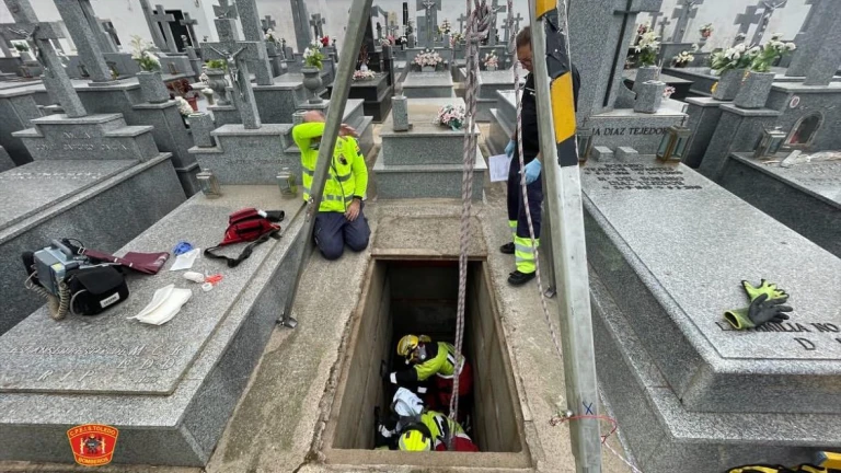 Cae dentro de una tumba en un cementerio y tiene que ser rescatada por los bomberos