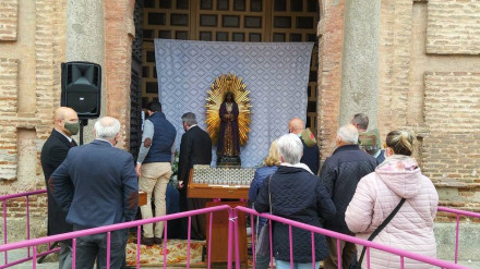 A esta hora, son muchos los que se han acercado a venerar la imagen que, por la pandemia, se ha ubicado en el exterior del templo