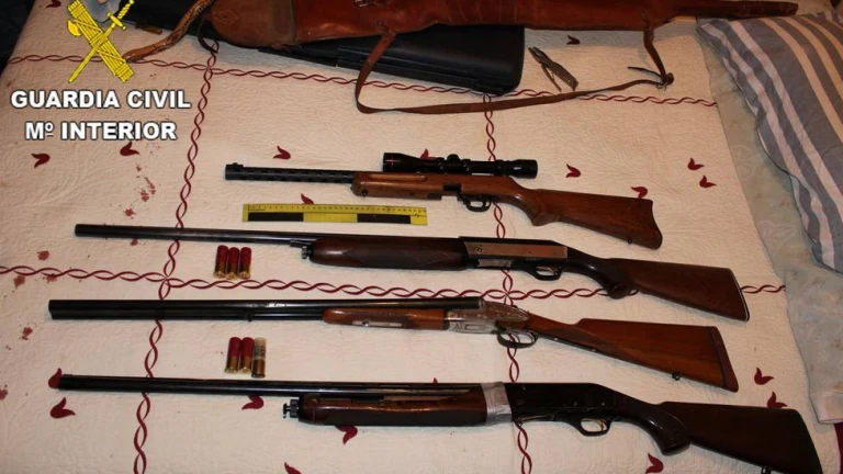 Esa misma tarde los agentes realizaron dos registros domiciliarios, hallando un total de seis armas largas de fuego de distintos calibres, una de ellas municionada y dispuesta para ser usada, y algunas de ellas manipuladas, además de numerosa munición y dos bolsas cerradas herméticamente que contenían tres kilos de cogollos de marihuana. Seguidamente se detuvo a uno de los implicados en estos hechos, un hombre de 43 años.