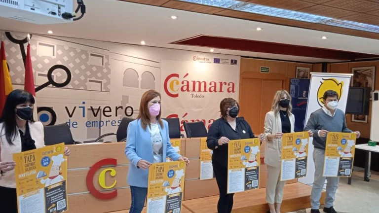 Este jueves día 6 de mayo, ha tenido lugar la presentación oficial en la Cámara de Comercio del I Concurso de tapa Gourmet solidaria que organiza la asociación Down Talavera, en el cual han estado presentes M.ªJesús Pérez, Diputada de Turismo y Artesanía y Deportes de la Diputación provincial de Toledo, Nuria Sánchez, concejala de protección Social y reducción de la desigualdad de Talavera de la Reina, Nacho Navarro, diseñador web de Planealia y Sara de Lucas y Natalia Molina como representantes de la asociación Down Talavera.