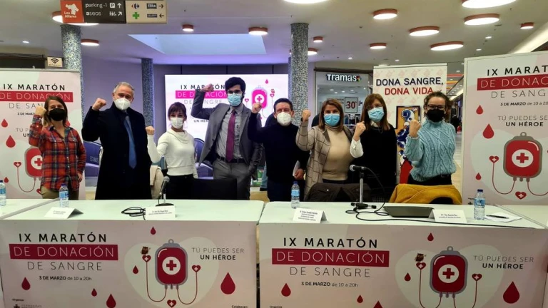 El centro comercial Los Alfares ha acogido esta mañana la presentación del IX Maratón de Donación de Sangre, que vuelve a organizarse tras la interrupción de dos años ocasionada por la pandemia. El próximo 3 de marzo, de 10:00 a 20:00 horas, el centro comercial acogerá un puesto de donación de la Hermandad de Donantes de Sangre de Talavera y su comarca en el que se espera superar la cifra de 400 donantes y, sobre todo, como subrayó el presidente de la Hermandad, Felipe Fondón, conseguir nuevos donantes que se conviertan en habituales. “Animo a las personas solidarias que aún no han donado sangre a que se sumen a esta gran familia que es la Hermandad de Donantes de Sangre de Talavera y Comarca, especialmente a los jóvenes. Necesitamos que cojan el relevo de nuestros donantes más mayores”, explicó Fondón, quien recordó que “una sola bolsa de sangre salva tres vidas".