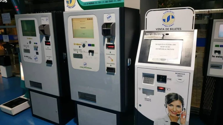 Foto 2: Máquinas estación de autobuses en Madrid, derecha no acepta tarjeta de crédito, izquierda no acepta nada, central no sabe ni contesta.