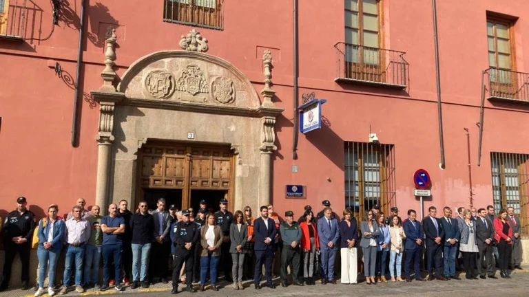Esta mañana de jueves, 27 de octubre, el pleno del Ayuntamiento de Talavera ha hecho un receso para que toda la corporación se pudiera sumar a los 5 minuto de silencio convocados por la Policía Local de la ciudad, por Alejandro Congosto, el policía talaverano, muerto ayer en Argamasilla de Calatrava (Ciudad Real), en el tiroteo en el que perdió la vida también un agricultor. Fue precisamente por tratar de auxiliar a esta persona por lo que Congosto fue alcanzado por el francotirador, que finalmente fue abatido por las Fuerzas de Seguridad. La cita se ha celebrado a las puertas de la Jefatura de Policía Local de Talavera, en la plaza del Pan.