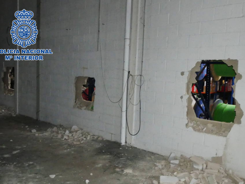 Una vez dentro, realizaron en la pared tres butrones, teniendo acceso así al establecimiento de al lado, la empresa de suministros eléctricos y de iluminación que era su objetivo real.