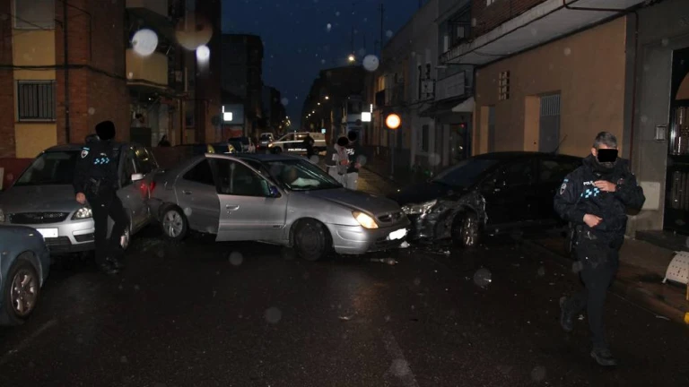 Allí observaron como dos vehículos habían colisionado al invadir un vehículo el carril por el que circulaba el otro, causando daños en un vehículo estacionado y en una papelera del mobiliario urbano, atendiendo a los conductores heridos hasta al llegada de los Servicios Sanitarios.