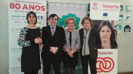 La presidenta nacional de Afammer, Carmen Quintanilla, el vicepresidente ejecutivo de la Fundación ONCE, Alberto Durán y la directora general de Inserta Empleo, Virginia Carcedo han firmado un convenio para fomentar el empleo de las mujeres con discapacidad en el mundo rural.