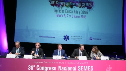El consejero de Sanidad, Jesús Fernández Sanz, en su intervención en el acto de inauguración del XXX Congreso Nacional de la Sociedad Española de Medicina de Urgencias y Emergencias (Semes) celebrado en Toledo, en la que ha estado acompañado por el presidente regional, Emiliano García-Page; la directora gerente del Servicio de Salud de Castilla-La Mancha (Sescam), Regina Leal; el presidente de Semes, Juan González Armengol; y el presidente del Comité Organizador del congreso, Ricardo Juárez, ha afirmado que la nueva ministra del ramo, Carmen Montón, "sabe que esto es una lucha" del sector que tendrán que ganar "entre todos, con armonía y consenso".
