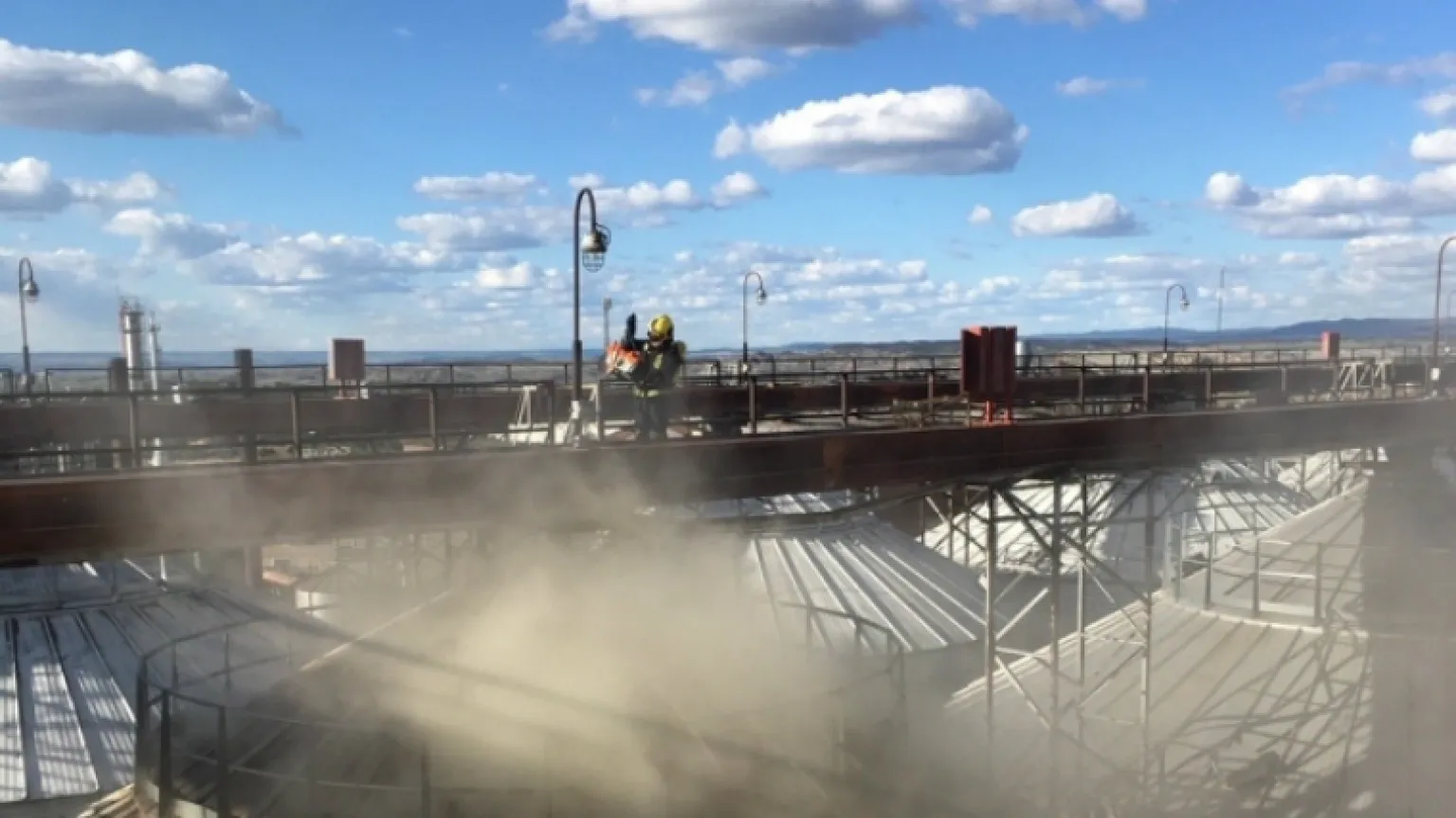 Los bomberos continúan trabajando en la extinción del fuego que afecta desde este pasado martes a un silo que almacena 1.500 toneladas de pipas de girasol en Tarancón (Cuenca) después de que se hayan reavivado las llamas, según ha informado el Servicio de Atención y Coordinación de Urgencias y Emergencias 112 a Europa Press.