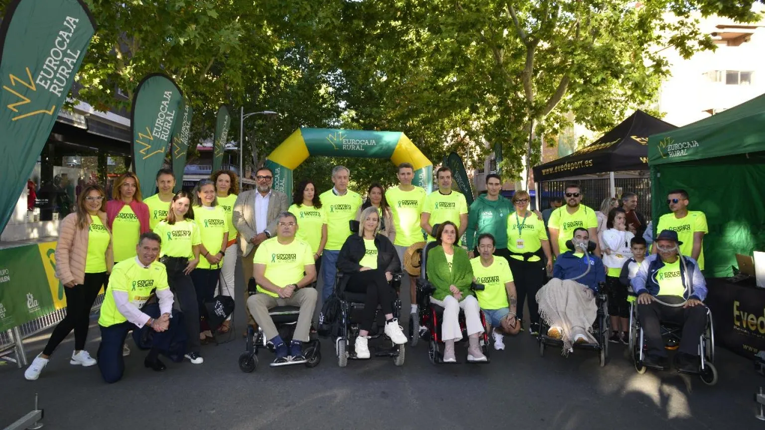 De hecho, antes del inicio de la carrera, se ha celebrado una marcha simbólica contra la ELA, protagonizada por personas afectadas por esta enfermedad, familiares, representantes de las entidades beneficiarias, autoridades e invitados, para dar mayor visibilidad a esta enfermedad degenerativa. En ese momento, se procedió a la lectura de un documento de José Luis, profesional de Eurocaja Rural diagnosticado de ELA, haciendo un llamamiento para reconocer y valorar la enorme entrega y sacrificio de familiares y personas que cuidan a los afectados, la necesidad de no hacer invisible a los enfermos, así como solicitando mayores recursos para incrementar la investigación de la enfermedad, para agilizar su prevención y tratamiento.