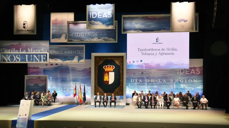 A continuación, se ha proyectado un vídeo en el que se ha destacado el lema del Día de la Región de este año, 'Castilla-La Mancha nos une', remarcando que las emociones, los lugares, la cultura y la ilusión que unen a los castellano-manchegos son "lo mejor de la región".