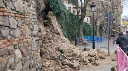El incidente fue registrado en torno a las 2:40 horas de este miércoles, cuando un vecino informó a la Policía Local del derrumbe de parte del muro de contención que se encuentra bajo la Puerta de Alarcones, ha señalado el Consistorio toledano en una nota de prensa.