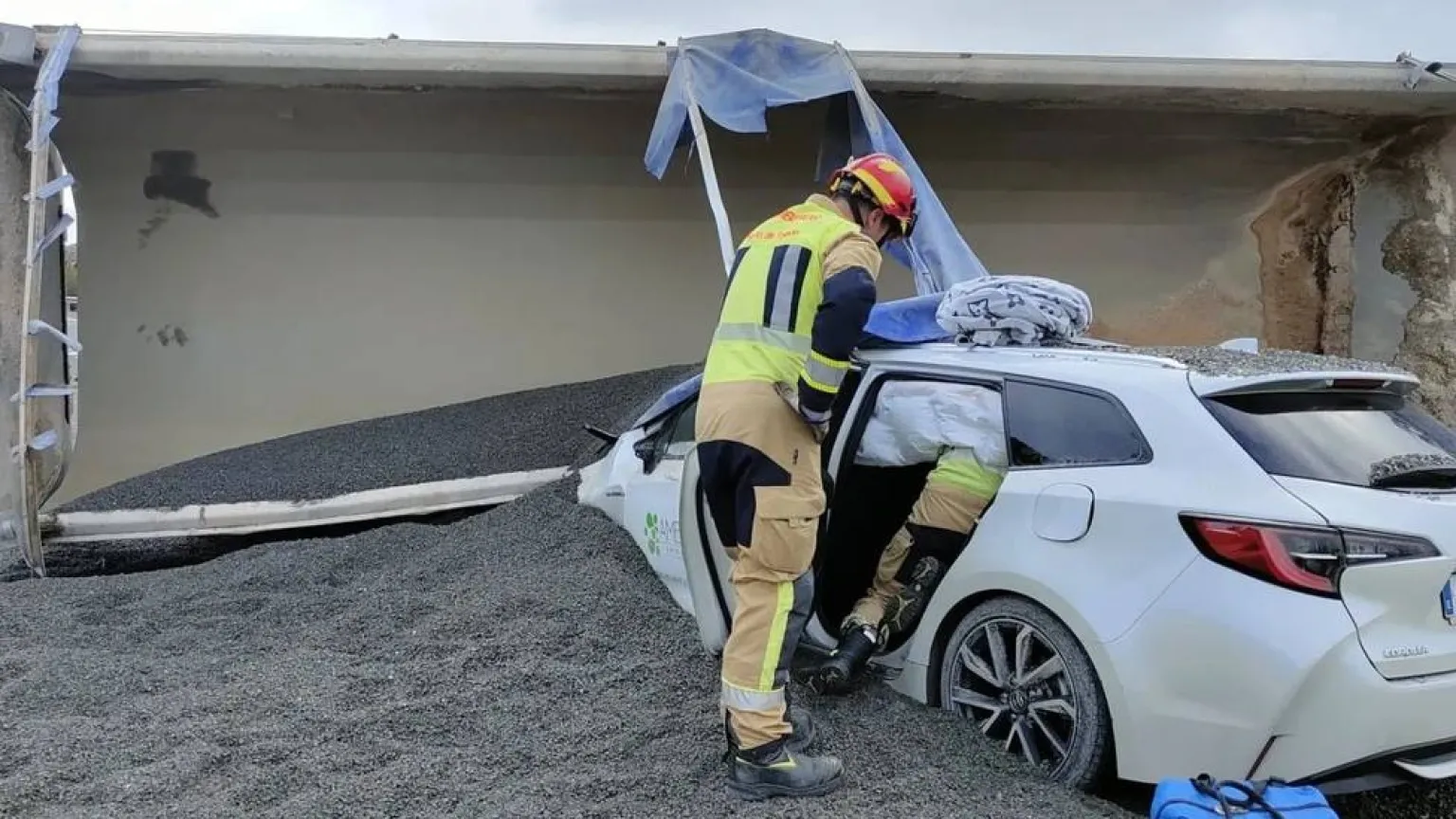 La colisión ha provocado el posterior vuelco del camión, que cargaba arena, que ha cortado parcialmente el tráfico de la A-2, en los carriles derecho y central, tal y como han informado fuentes del Servicio de Urgencias y Emergencias 112 de Castilla-La Mancha.