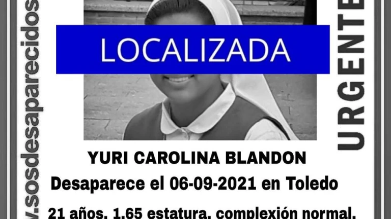 La Policía Nacional ha logrado resolver en pocas horas la desaparición en Toledo de Yuri Carolina Blandon López, una joven religiosa de 21 años que ha sido localizada este martes en buen estado.