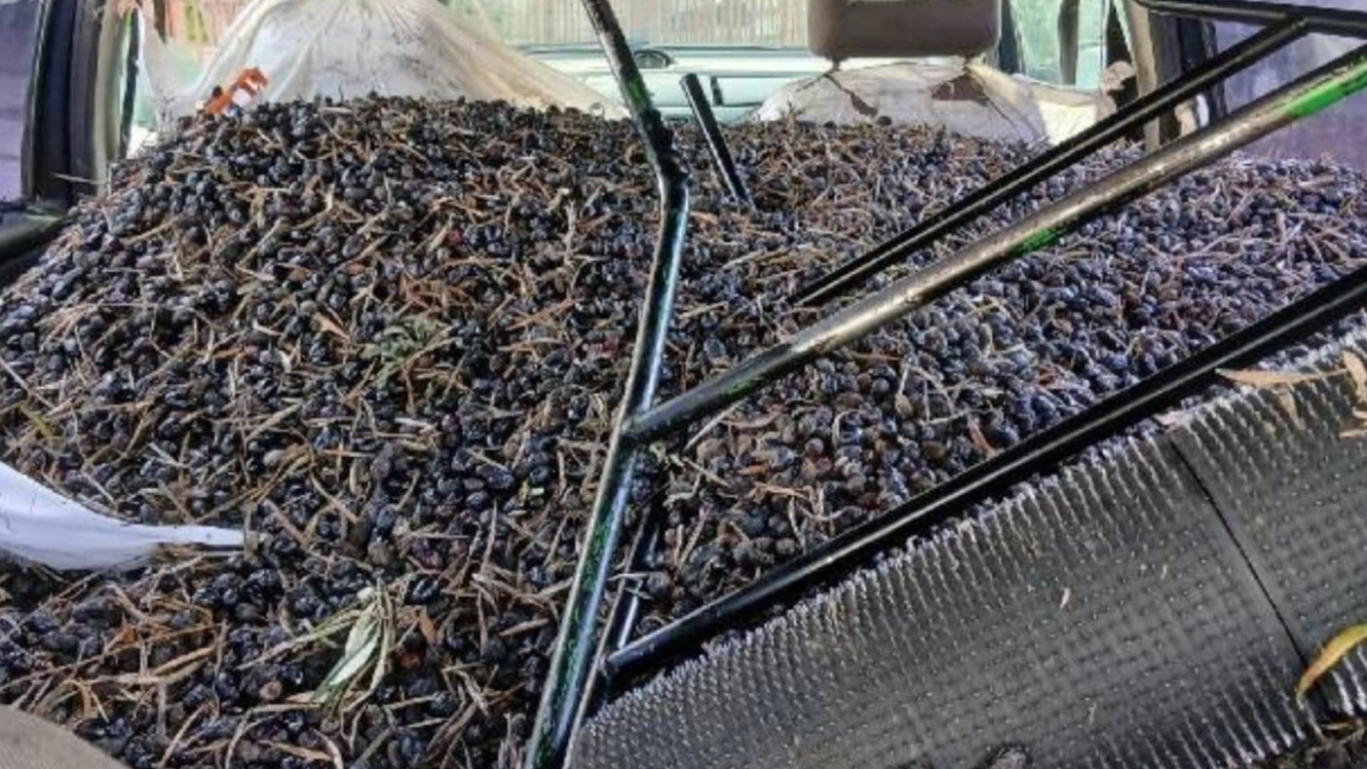 La sorpresa de los agentes al revisar un coche en un camino agrícola: un coche, herramientas y cientos de kilos de aceitunas