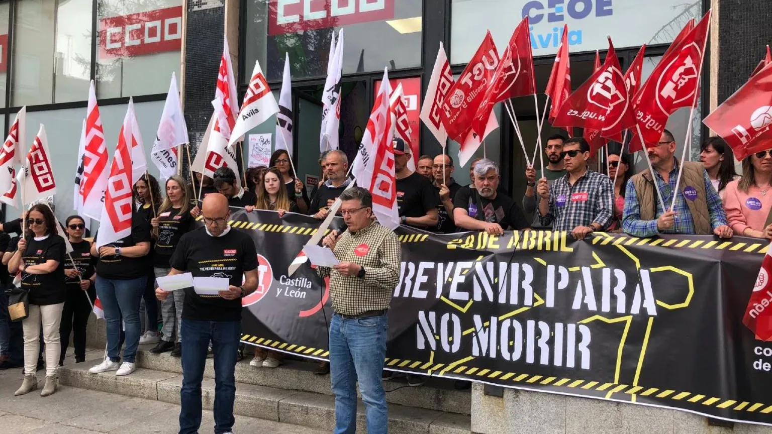 “Prevenir para no morir” bajo este lema, y vestidos de negro en señal de luto, se han manifestado los delegados sindicales de UGT y CCOO en el Día Mundial de la salud y seguridad en el trabajo.