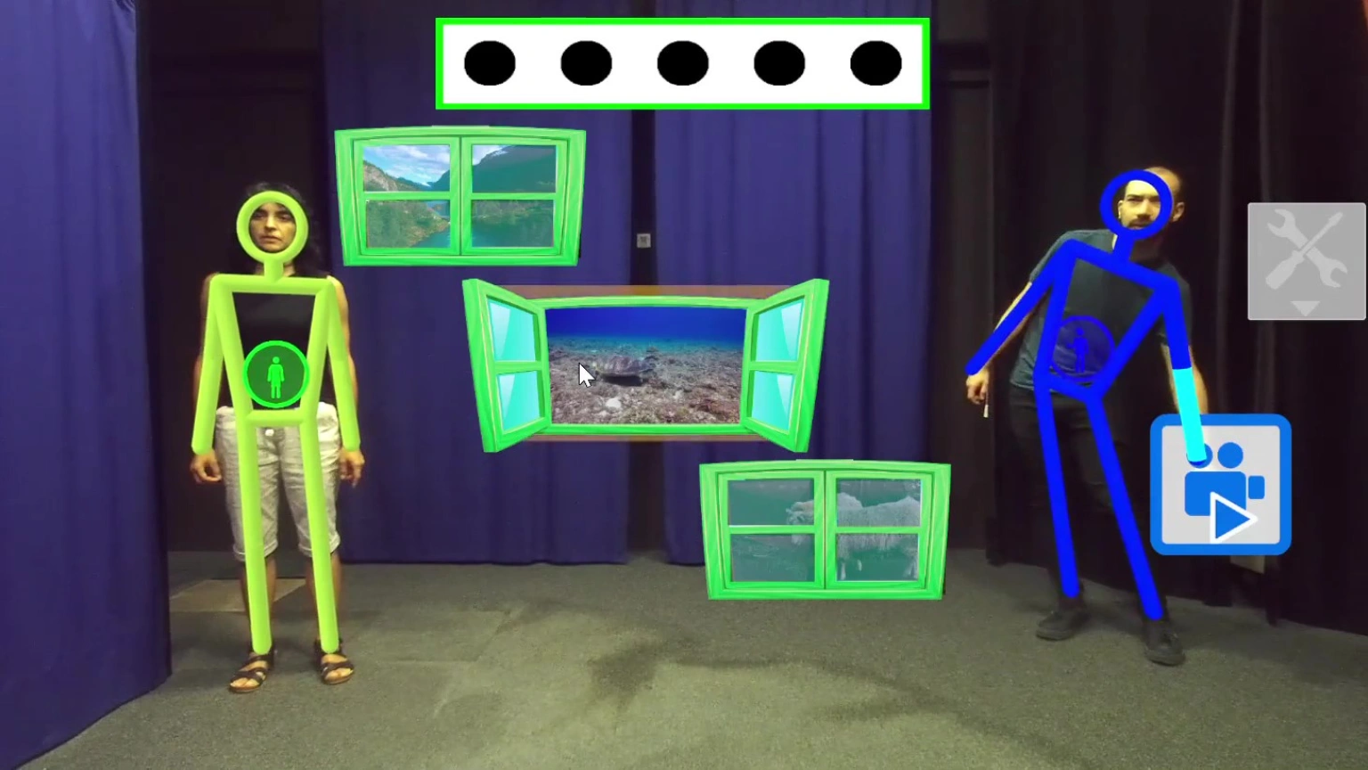 Se trata de la herramienta conocida como 'Pictogram Room' o 'La habitación de los pictogramas'. Gerardo Herrera, presidente de Autismo Ávila, la describe como "una especie de espejo, en la que uno se ve a sí mismo junto con una serie de gráficos aumentados". Un muñeco virtual se superpone a la imagen del niño y replica sus movimientos en tiempo real para facilitar el aprendizaje.