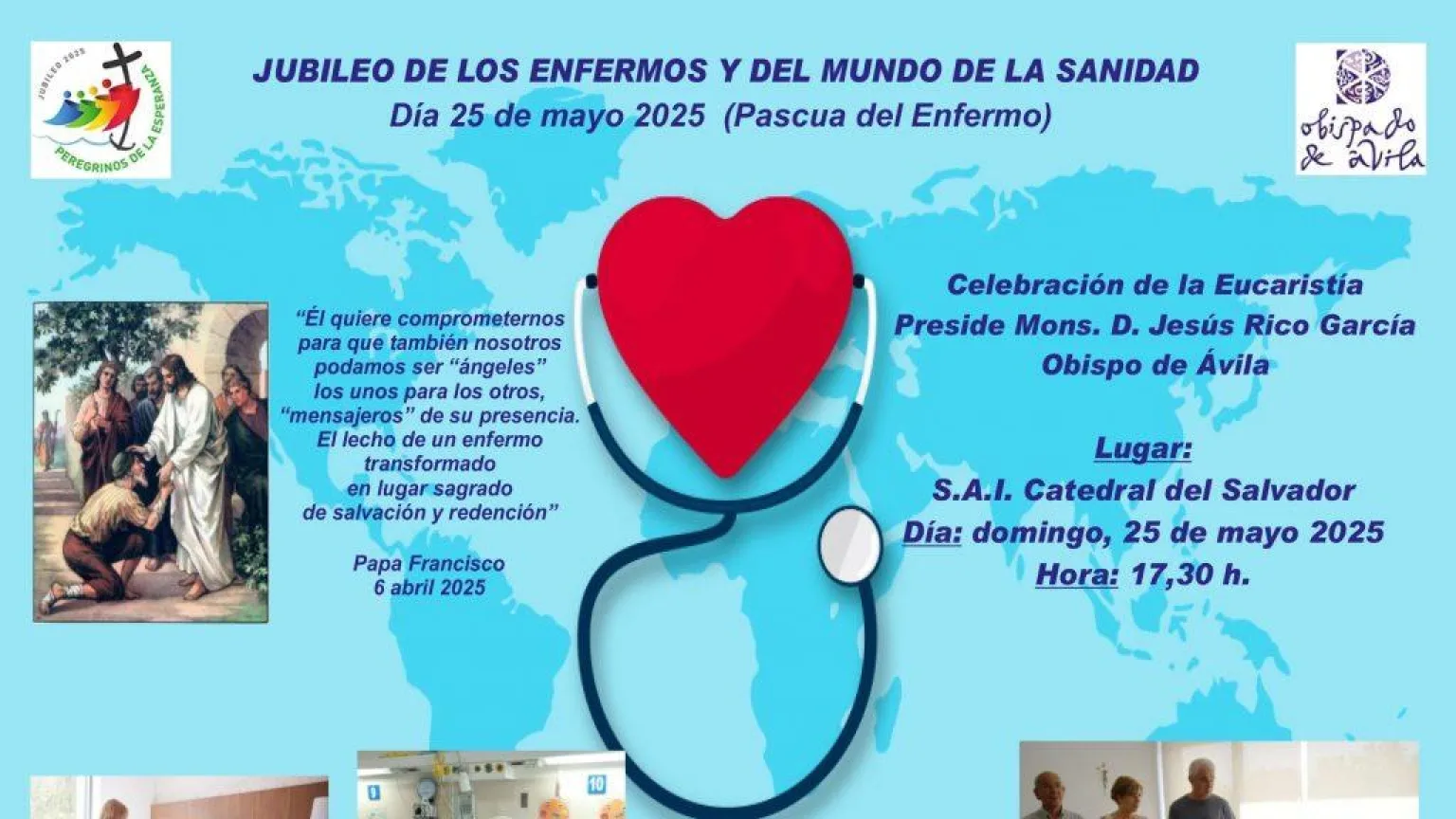 La Diócesis de Ávila, a través de la Pastoral de la Salud, anuncia con alegría que el próximo domingo 25 de mayo se celebrará en la S.A.I Catedral del Salvador, el Jubileo de los Enfermos y del mundo de la sanidad. Se ha hecho coincidir este momento jubilar tan importante con la Pascua del Enfermo (que tradicionalmente se celebra en toda la Iglesia española el VI domingo de Pascua).