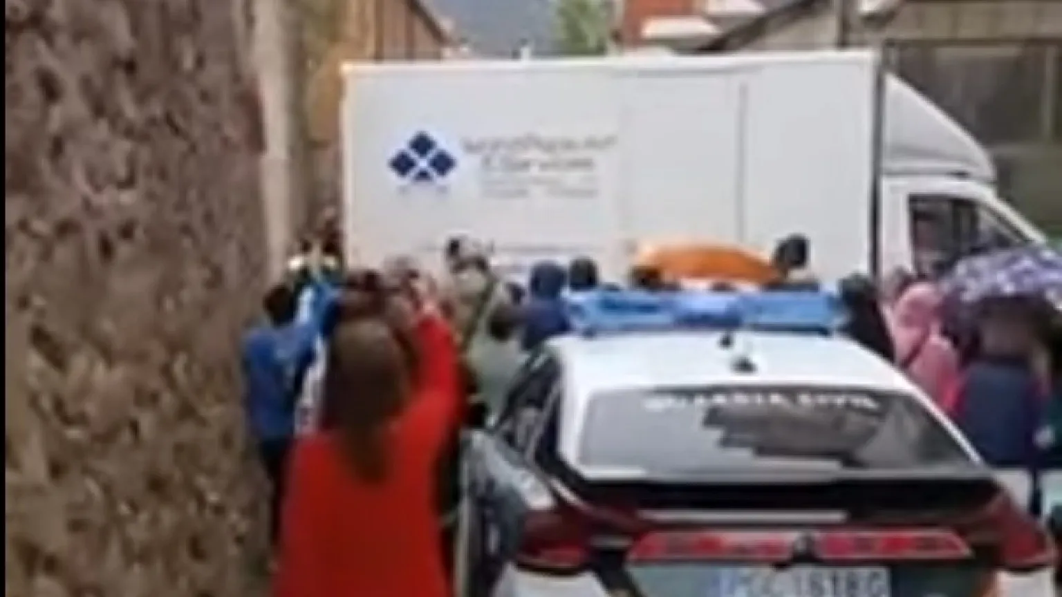 Los vecinos hacían una protesta a las puertas del convento sin poder impedir la salida de los cuadros, tallas y esculturas, propiedad de la Federación Mater Unitatis de Monjas Carmelitas de la Antigua Observancia.