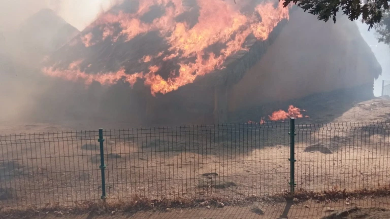Las llamas han quemado dos de las casas museo del castro celta de El Raso (Ávila)