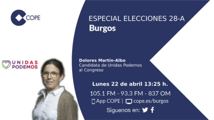 La candidata de Unidas Podemos en Burgos al Congreso de los Diputados, Dolores Martín-Albo, responde a las preguntas de Sergio Corral en el Especial Elecciones 28-A.