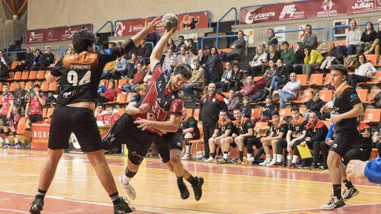 Duelo de máxima intensidad desde el arranque por parte de ambos contendientes, especialmente en labores defensivas. Los dos equipos se mostraron sólidos bloqueando la ofensiva rival y los ataques se prolongaban hasta el borde del pasivo en los primeros instantes. A Burgos le costaba correr y encontrar hueco en la zaga salmantina, pero los primeros minutos de dificultad y de acciones precipitadas dieron paso a la seriedad y concentración propia del bloque local. Una mayor firmeza a la que se llegó, en parte, por la exclusión Pablo García en el minuto 6, que forzó a los hombres de Nacho González a meterse en el partido para evitar sustos innecesarios. Fue el momento en el que el cuadro rojinegro sacó a relucir todas sus variantes ofensivas, apoyados en gran medida en el extremo izquierdo, Pablo Cantore, que, o bien resolvía desde su posición o bien colgaba un ‘fly’ para ceder el honor a un excelso Juan Tamayo que cuajó un gran partido de principio a fin (min. 8, 5-3).
