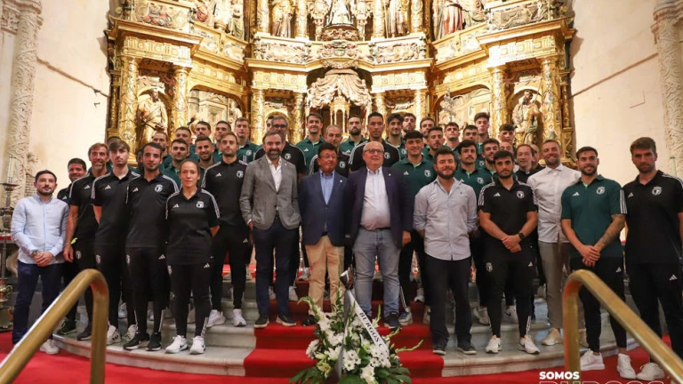 Posteriormente, fue el turno para que dos de los capitanes portaran un ramo de flores hasta el altar y los otros dos tomaran la palabra. Nacho San Millán y Rodrigo Santidrián cerraron el acto con sus peticiones y deseos, antes de que toda la familia blanquinegra posara para los medios gráficos en el altar de Santa María y la Puerta Real.