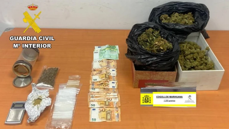 También se halló una báscula de precisión, bolsas de plástico para dosificación, semillas de cannabis sativa para plantar, un tamiz artesanal, cogollos polinizados, hoja con anotaciones y un catálogo de plantas de marihuana. En un armario se encontró una caja fuerte que contenía dos fajos de billetes que sumaron la cantidad de 1.750 euros. Además de la propia marihuana, que arrojó un peso de 1.350 gramos, también se ha aprehendido polen de la planta, con mayor pureza.