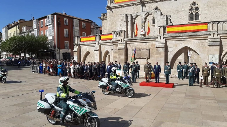 Precedido de un oficio religioso de hermandad oficiado por el Arzobispo de la Archidiócesis de Burgos, Mario Iceta, en la Capilla de Santa Tecla, y que contó con el Coro de la Real Hermandad de Veteranos de las Fuerzas Armadas y la Guardia Civil. En la parada militar ha formado una Sección de Honores, Escuadra de Gastadores, Escuadra de Motoristas de la Agrupación de Tráfico, SEPRONA y también ha participado dos unidades caninas y sus respectivos guías, completada con la Unidad de Música de la División San Marcial que ha aportado la música y toques militares.