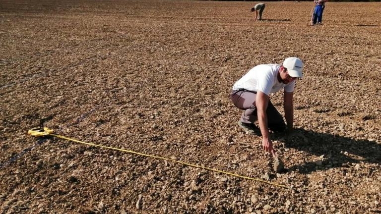 La prospección geofísica de este año se ha realizado para completar los datos obtenidos en la campaña iniciada el año pasado. Se trata de un lugar donde se conocían indicios de la existencia de un asentamiento prehistórico por los materiales (sílex, cerámicas, hachas, etc.) recogidos en prospecciones arqueológicas superficiales realizadas en la década de 1980. Durante estos días se ha completado la prospección con la identificación de las anomalías magnéticas del terreno del poblado en una superficie total de 7,3 hectáreas.