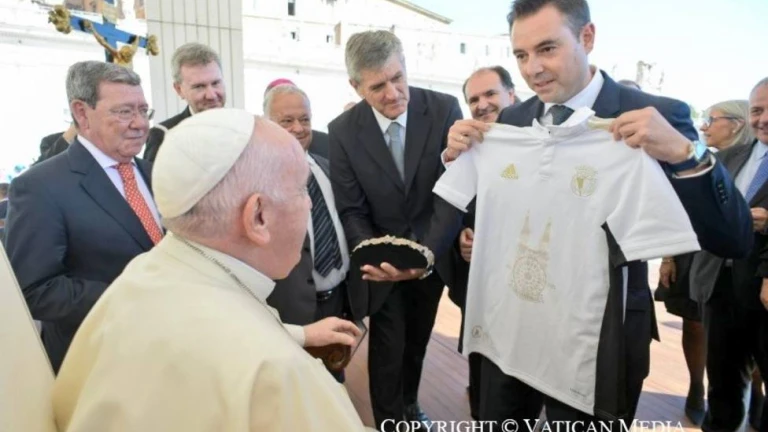 La camiseta del Burgos CF no ha sido el único obsequio que ha recibido el Papa Francisco. El arzobispo de Burgos, Mario Iceta, le entregó una reproducción “de un decreto del rey Alfonso VI del traslado de la sede episcopal de Oca a Burgos en el año 1075”. El mismo Papa Francisco fue obispo titular de la sede episcopal de Oca (Burgos) durante 30 años.