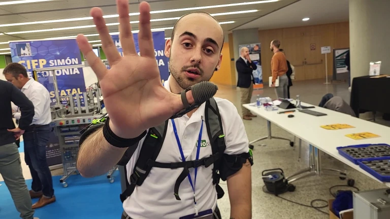 Por otro lado, la empresa Olpe Ingeniería y el Centro de Formación Profesional Simón de Colonia han mostrado un exoesqueleto que facilita la manipulación de cargas pesadas. Diego Arbea, portavoz de la empresa, destacó que este tipo de tecnología puede aliviar considerablemente el esfuerzo físico de los operarios. "Aunque haya muchísimos cursos de cómo agacharse a coger una carga, que sería en posición de sentadilla y utilizando cuádriceps y glúteos, nadie lo hace porque normalmente vamos siempre con prisa, entonces estos exoesqueletos lo que nos hacen es reeducarnos en ese tipo de movimientos para que nuestra zona lumbar no sufra tanto", aclara.