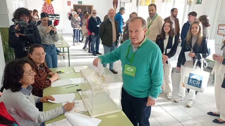 El candidato de Vox, el más madrugador a la hora de votar, acudió a las 9.00 horas acompañado de su mujer e hijas a ejercer su derecho a voto