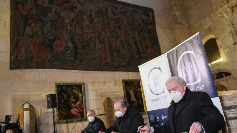 La Fundación VIII Centenario de la Catedral. Burgos 2021 y el Cabildo Metropolitano de Burgos firmaron hoy un convenio de colaboración para restaurar y limpiar dos tapices flamencos que custodia la basílica y que fueron donados por el obispo Juan Rodríguez de Fonseca a comienzos del siglo XVI. El presupuesto de esta intervención asciende a 80.000 euros, los trabajos se extenderán aproximadamente entre cuatro y seis meses y de ellos se encargará el taller de la restauradora Pepa Garrido.