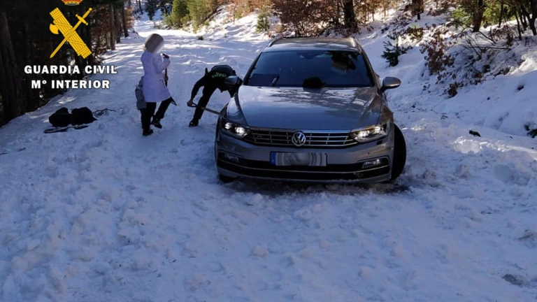 La Guardia Civil ha auxiliado a una pareja y la hija de ambos de 20 meses de edad, que se quedaron atrapados en la nieve con su vehículo en una pista en el término municipal de Quintanar de la Sierra.