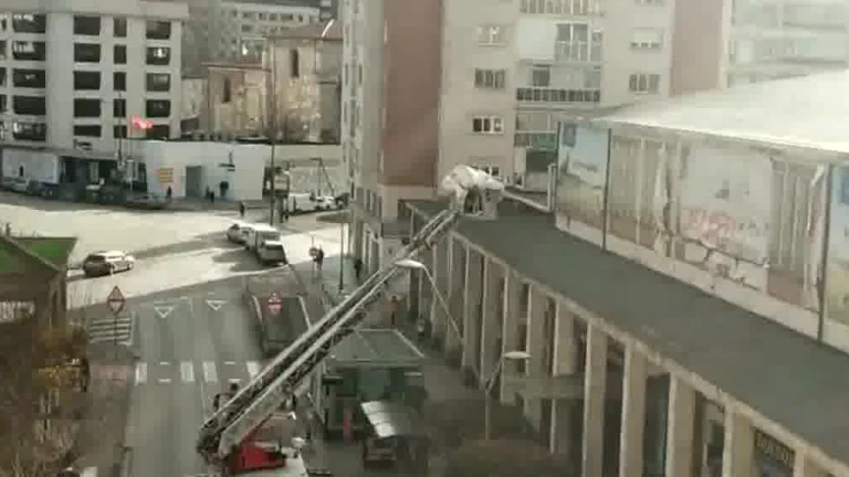 Los bomberos retiran las lonas dañadas del Mercado Norte